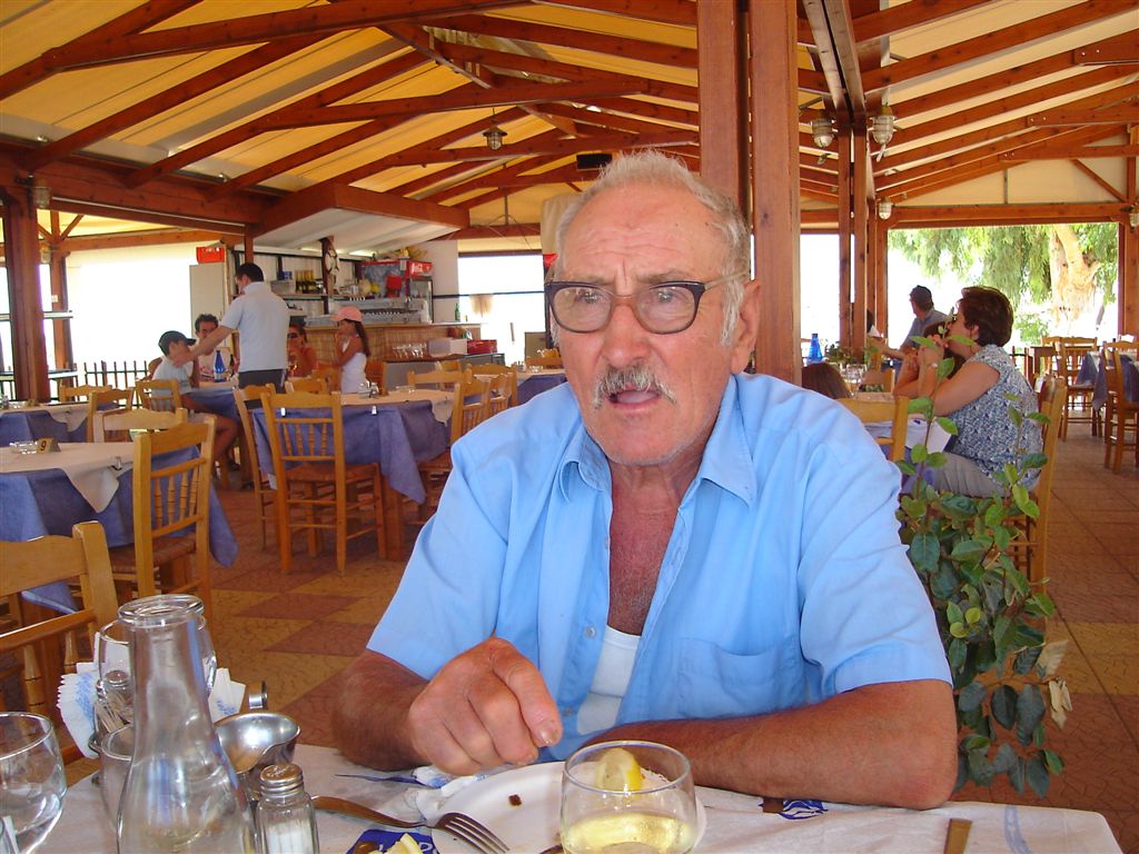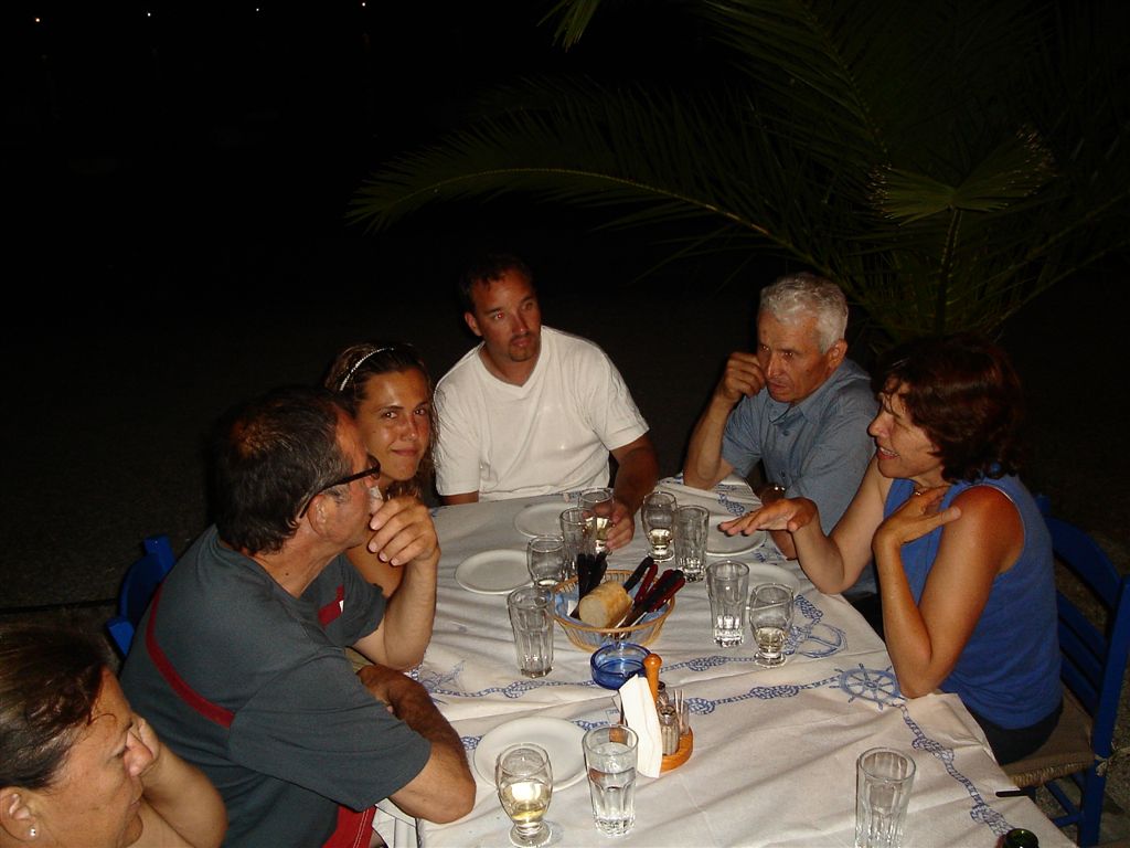 In the town of Anafonitria there are two empty restaurants to choose from. We pick Anastasia’s restaurant which seats 300 in case of a tour bus crowd but was empty that night. The waitress/chef/owner Anastasia starts chatting with us and asks which hotel we are staying at. We tell her we haven’t found one yet and she invites us to spend the night at her house. We hesitate a bit but after dinner at 11:30 when she asks a second time we have no hesitations. She lives just above the restaurant and has a nice guest room with 2 double beds and a bathroom. The next morning she also serves us breakfast and will not accept our money. We thank her and promise to come back for another dinner before we leave the island.
