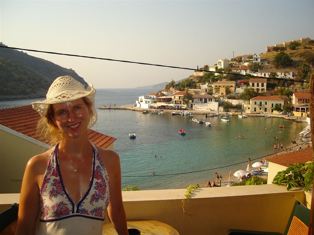 Kefalonia is a larger island and we know that we are going to have to zig-zag our way down in order to see it. Upon arriving we drive down from the port town of Fiskardo to the little village of Assos. This is a very quaint little town that straddles the isthmus of a peninsula. Guide books warned that it fills up fast yet we had no trouble finding a room, Saturday night, at the recommended Lindaros (Demetri even bargained the price as usual). Our room was quite nice with an ocean view. We went for a late snorkel but since the bay was already in the shadow of the fortress we did not see much