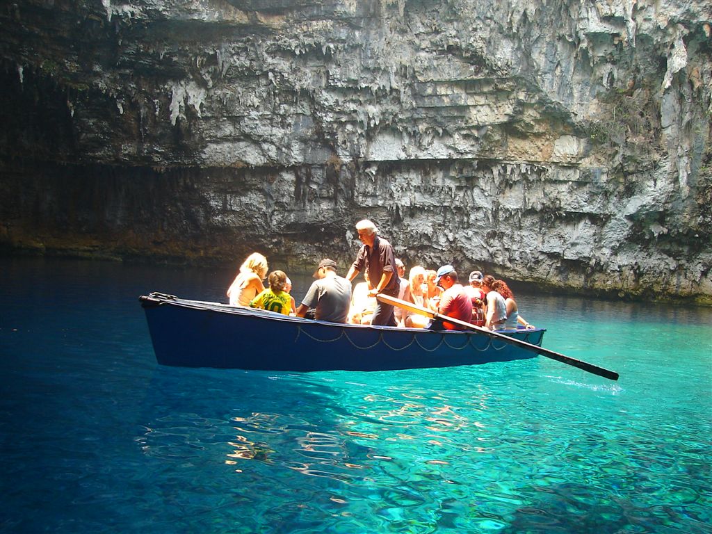 Just before the town are the Melissani caves. http://en.wikipedia.org/wiki/Melissani_Cave
