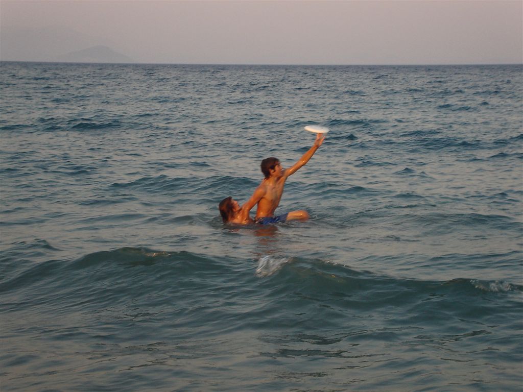 Then the best was 5 on 5 ultimate in the water. The boundaries were Turkey to the east and you had to stay in water deeper then your knees to the west. About half of us already knew how to play and you can imagine that Demetri’s cousins, who rounded out the teams, are all naturally athletic.