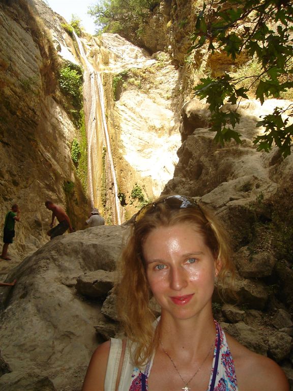 The first day was spent driving around the island to orient ourselves. The island is small enough that you can use Lefkada town as a base and go back and fourth to the beach each day. First stop was waterfalls 3 km from Nydri. After about a 45 min walk along a trickle of a stream you will reach the waterfalls. In the summer don’t expect much and you will be pleasantly surprised. The small pools along the way were not clean enough to swim in but were home to hundreds of tadpoles and frogs. The night before we had asked a local where the best beach was. So next we found Egremni located on the south west coast. This was a spectacular beach and worth the 3 € parking and the 300 steps that you needed to climb down. The water was clear, the beach had small white pebbles, and the surrounding cliffs were spectacular. We walked around to a slightly smaller beach where swimsuits were optional and stayed here until the sunset.