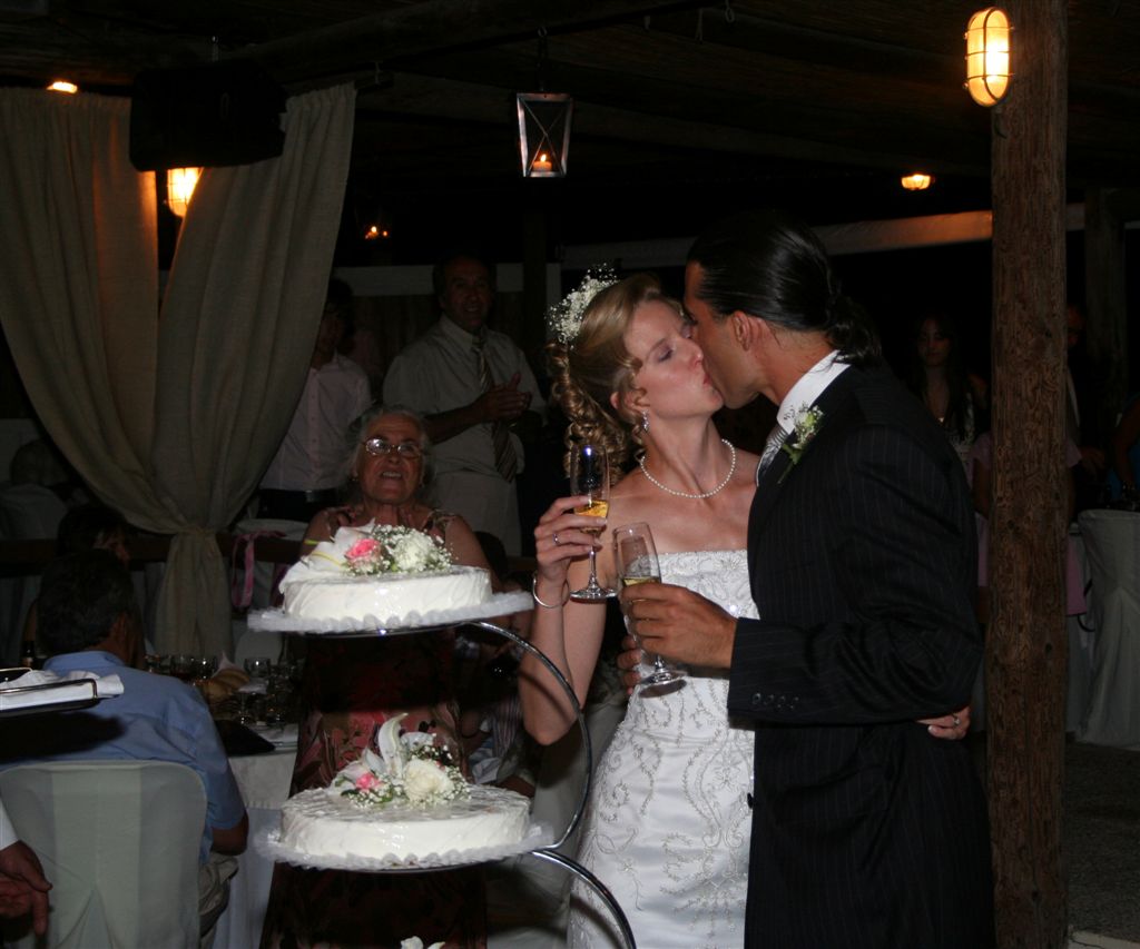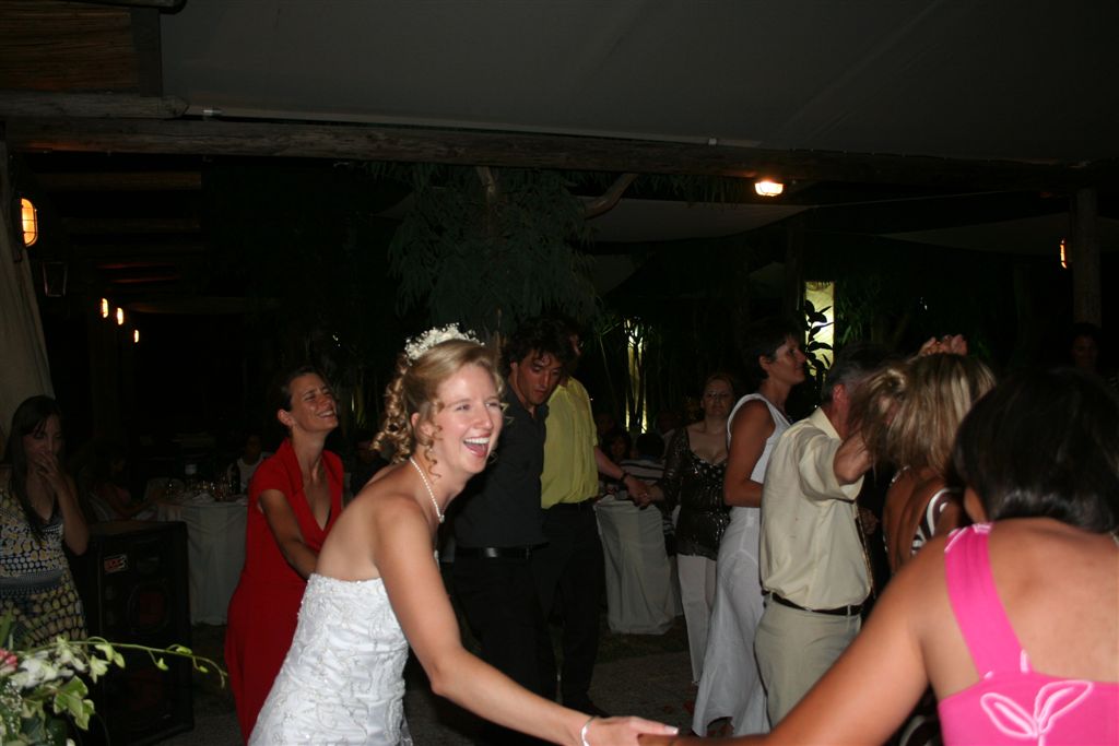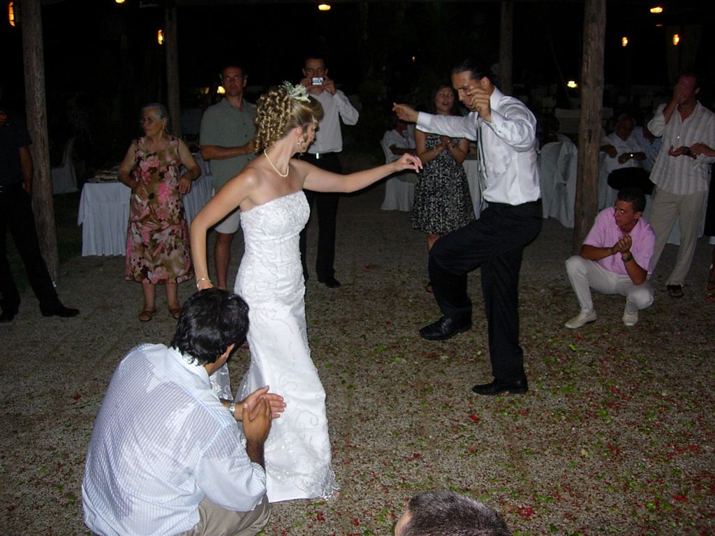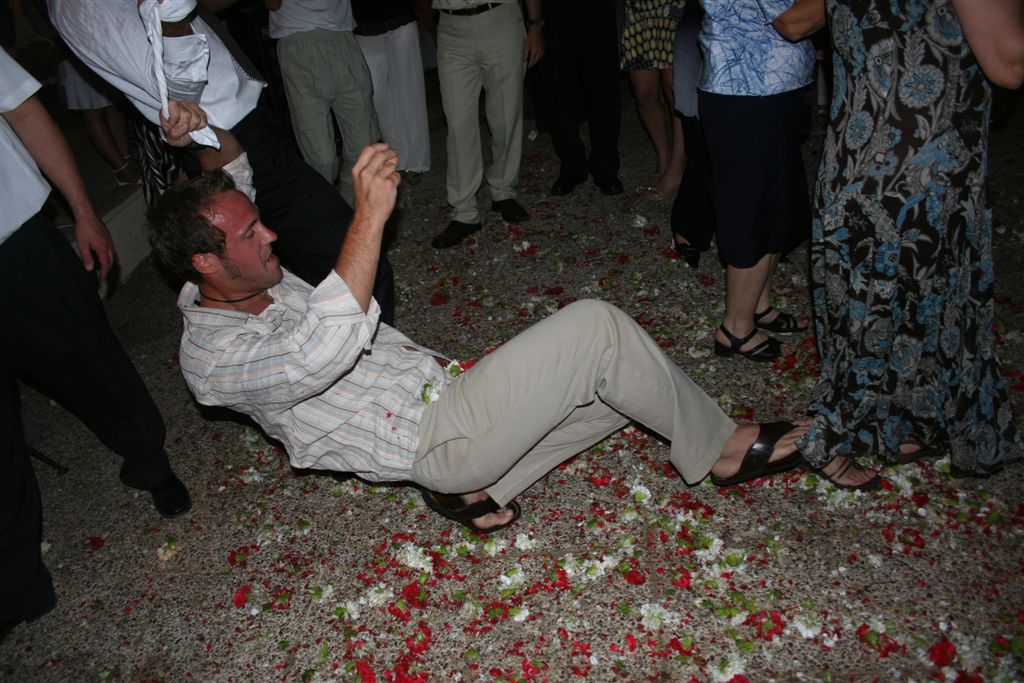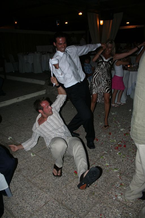 Kajsa performing the zembetiko. Extremely difficult in a wedding gown.